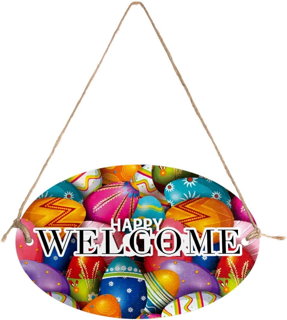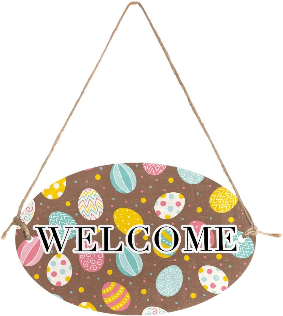 Amazon Com Welcome Sign Colorful Easter Eggs Pattern Cute Oval Wood Printed Door Plate Plaque Wall Hanging Front Door Decor Porch Garden Decorations Home Office Yard Room 12x8in With Hang Rope Home
