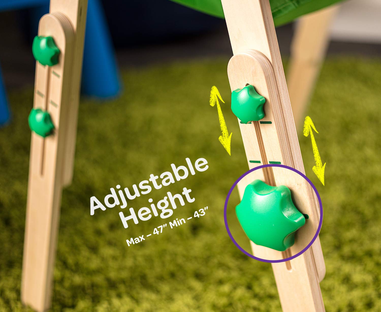 The dry erase board is also magnetic so the kids can easily change their activities and practice the magnetic alphabet or math. The adjustable height allows the easel to grow as the kids do. Sold and shipped by vm express.