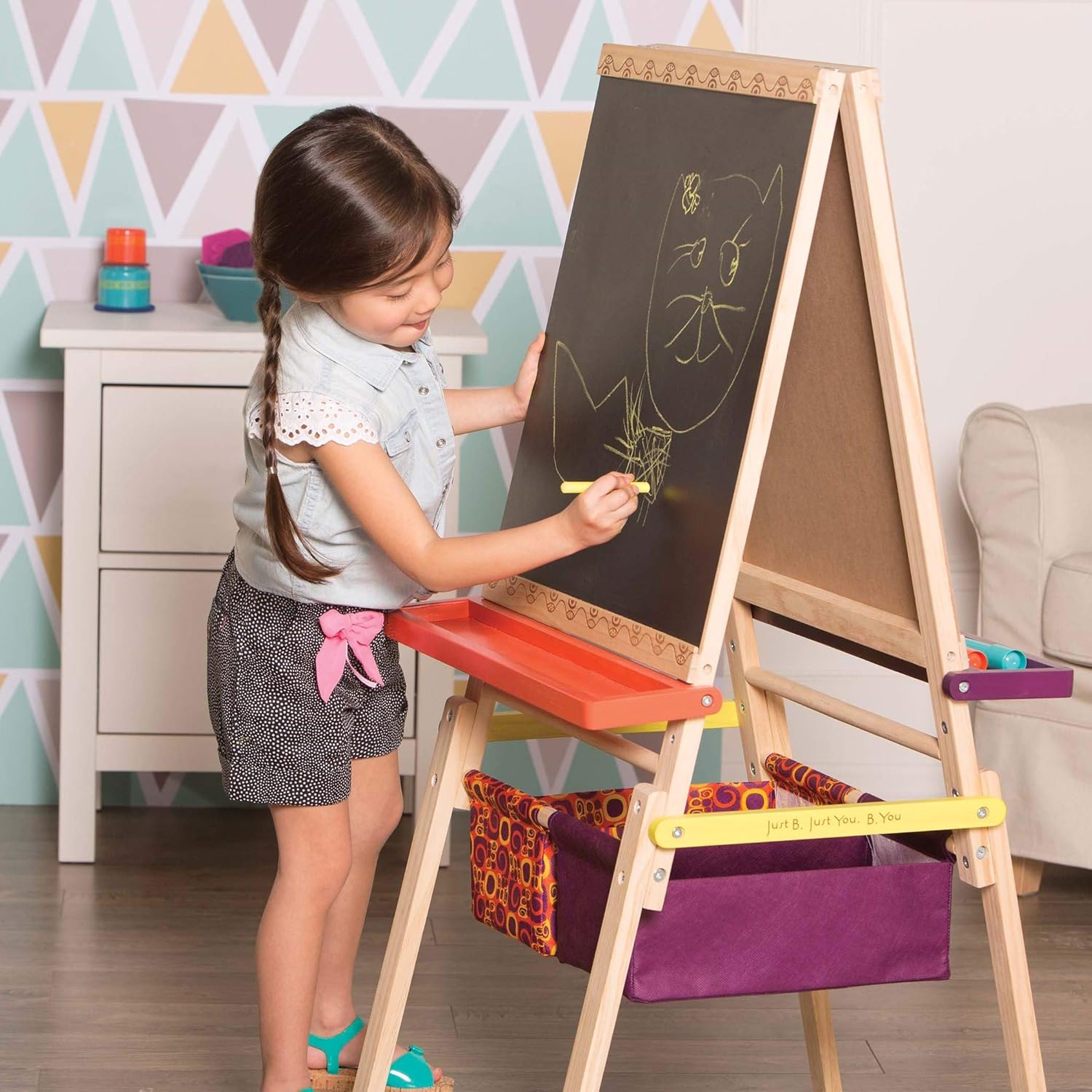 Amazon Com B Toys Art Easel For Kids Easel Does It Wooden Drawing Board Double Sided Stand Blackboard Whiteboard 2 Storage Bins 3 Years Toys Games
