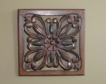 24 Brown Asian Carved Wood Wall Art Panel Decor Plaque Floral Teak Hanging Gift Ebay