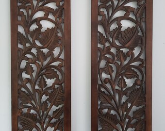 Pair Of Wall Art Panel Wood Carving Sculpture