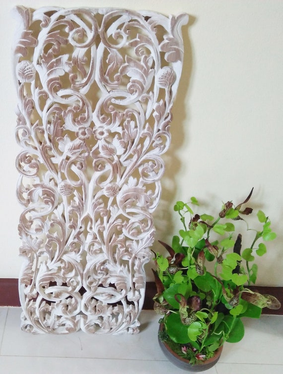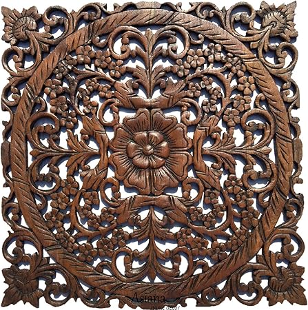 Hand carved wooden wall hangingwood wall art decorcarved wall panel art12 x 12 inches. 36 x 14 thai carved wall panel art wooden wall hanging lotus mandala decorative white rustic reclaimed teak natural wood headboard mythaihome. Size 48 dark brown.