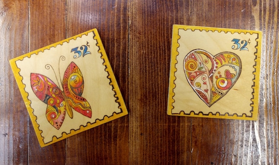 Butterfly And Heart Tiny Wood Burned Wooden Art Pieces Burned Etsy