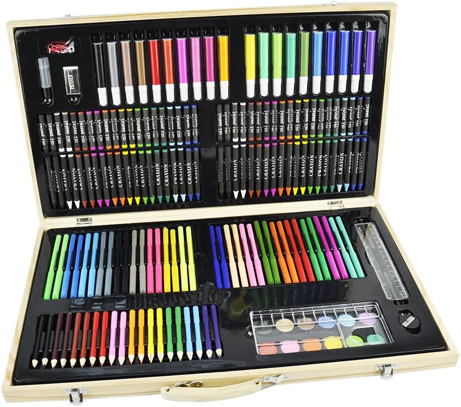 Vigorfun luxury art supply 129 piece mega wood box art painting drawing set with color mixing wheel and drawing sketching paper pads 46 out of 5 stars 317 5599 55. Sunnyglade 145 piece deluxe art set wooden art box drawing kit with crayons oil pastels colored pencils watercolor cakes sketch pencils paint brush sharpener eraser color chart cherry 48 out of 5 stars 2589. All conveniently packaged in a stylish wooden art box with artist drawer for easy storage and portability.