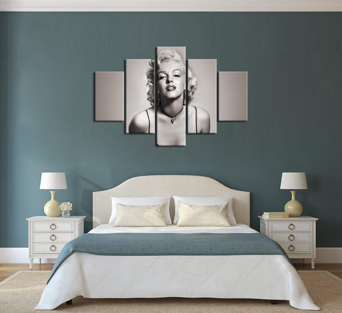 60wx32h Marilyn Monroe Wall Decor Vintage Painting On Canvas Retro Black White Wall Art 5 Panels Multi Pieces Posters Prints Pictures Wooden Artwork For Living Room Giclee Home Decorations Framed Posters