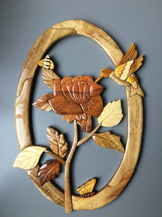 Intarsia Wood Rossholiday Giftwood Flowerwood Artwood Etsy