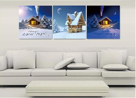 Amazon Com Triptych Wall Art Canvas 3 Pieces Moonlight Wooden House Cooking Smoke Snow Scene Small Fresh Creative Triptych Art Canvas Living Room Bedroom Restaurant Mural Hanging Picture Decoration Painting C1 Posters Prints