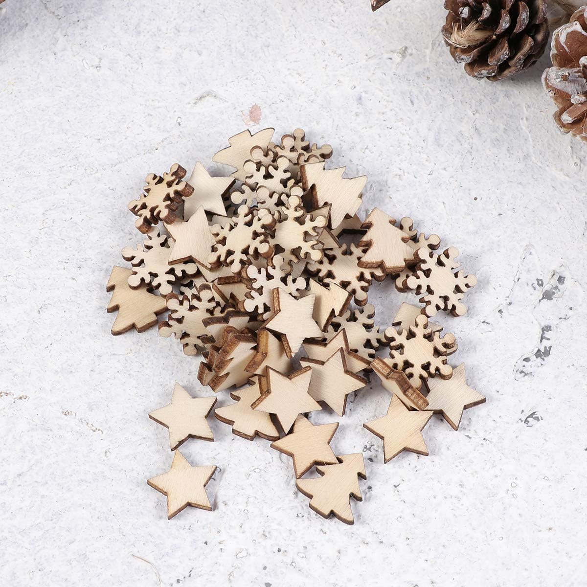 Party Home Eorta 200 Pieces Christmas Wooden Decorations Mini Snow Flakes Elk Bells Christmas Trees Bulk Wood Chips Rustic Table Scatter Small Gift Tag For Kids Diy Art Craft Craft Supplies Woodcrafts