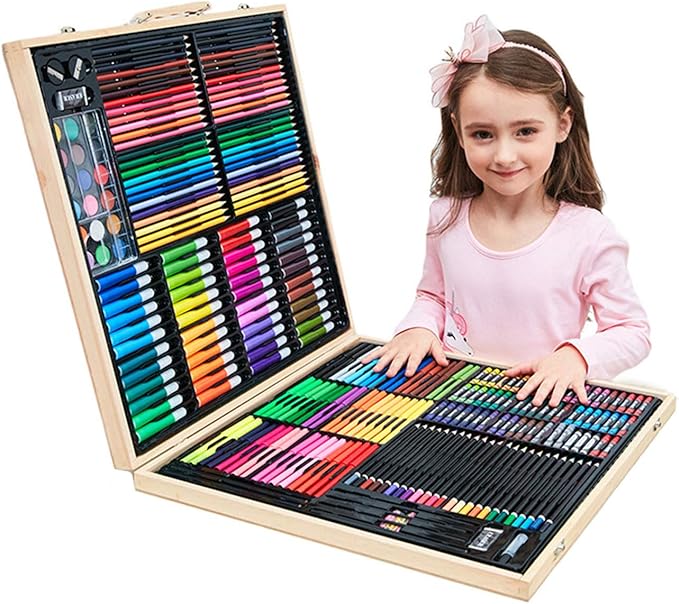 This wooden painting and drawing kit comprises of colored pencils oil pastels watercolor cakes paint brushes drawing pencils paint brushes and all the accessories required to make a beautiful picture. These art sets for kids cost roughly 15 to 30 and tend to have a wider range of materials and colors than basic. They can also flip on their genius switch and.