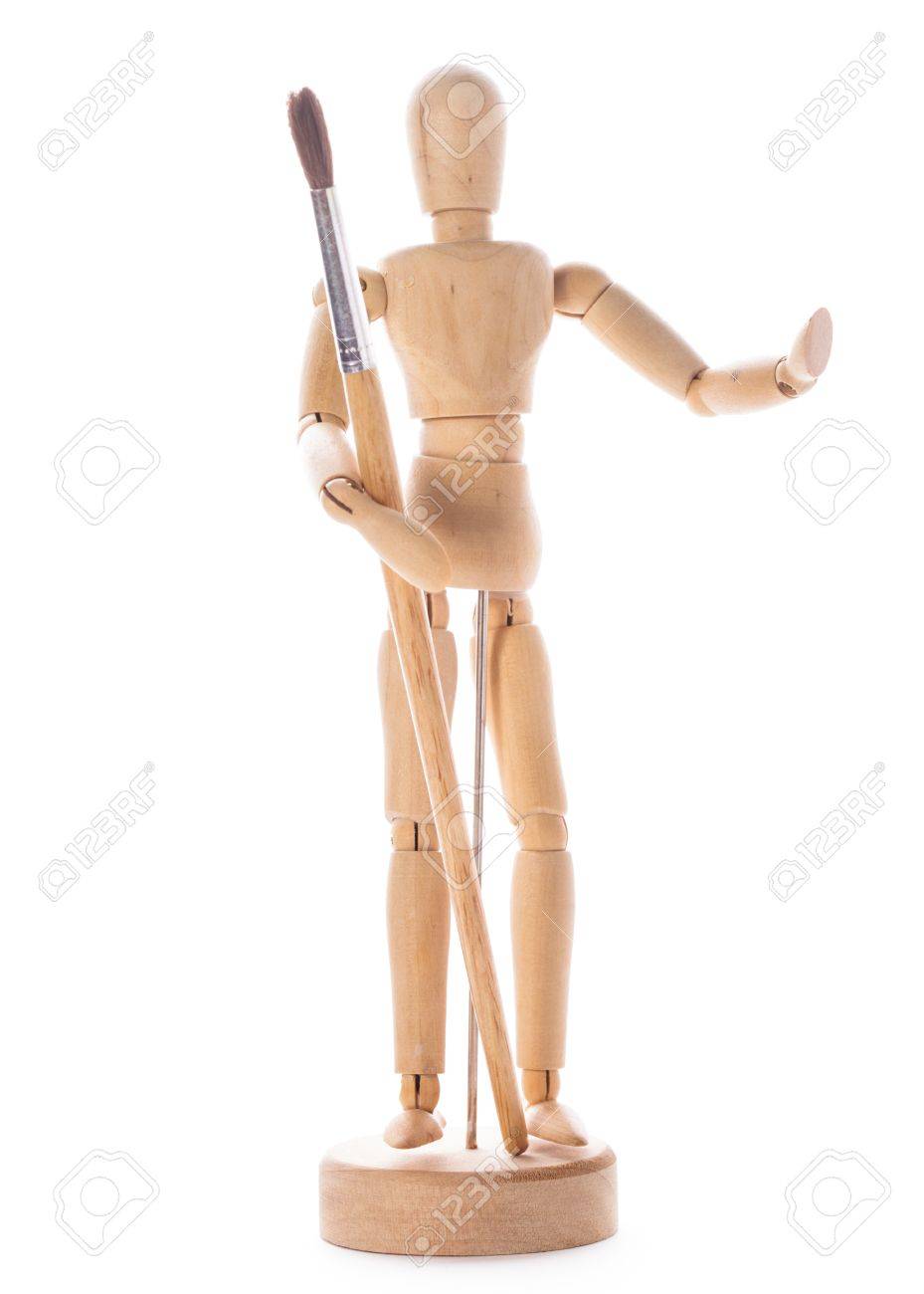 Art Concept Wooden Figure For Modeling Poses Of Human And Paintbrush Stock Photo Picture And Royalty Free Image Image 32038761