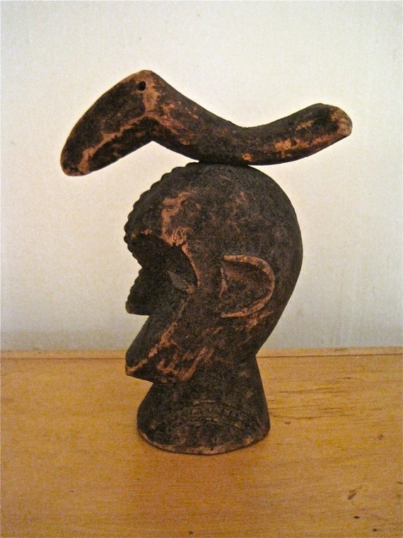 Antique African Art Wood Sculpture Of Head With Bird Etsy