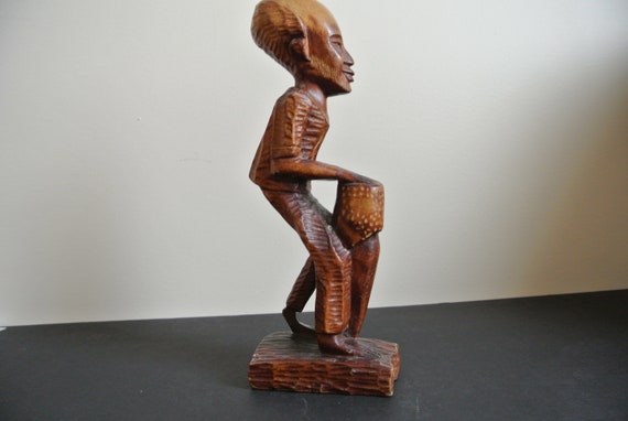 Wooden Sculpture African Sculpture Man Playing The Drum Etsy