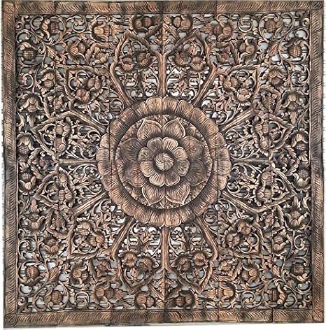 Amazon Com Mandala Wood Carving Teak Lotus Panel Wall Art Thai Carved Wood Wall Art Panel Mandala Carved Headboard Bohemian Wood Wall Hanging 4 Ft Headboard Thai Wood Carving 48 X 48 Inches