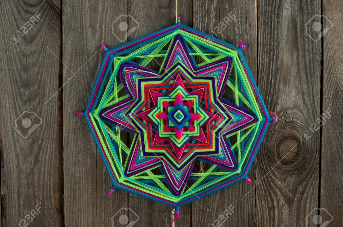 Mandala Star Of Woolen Threads On Wooden Boards Stock Photo Download Image Now Istock