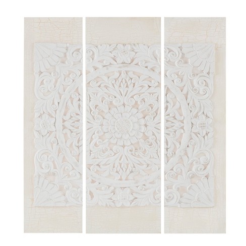 Set Of 3 35 5 Height Wooden Mandala 3d Embellished Canvas Decorative Wall Art Set White Target