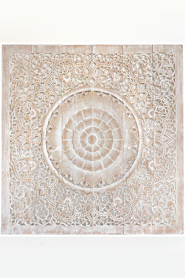 Mandala Boho Shabby Chic White Wsh Wood Wall Art Hanging Panel Carving Bali 60cm Ebay
