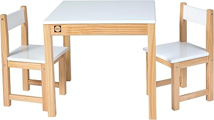 Wooden art table chairs set. Bright white legs and seat backs perfect for art projects of all kinds. The three wooden pieces are simple to construct with just a phillips head screwdriver and. Pull one of the two durable chairs up to the child size table theyre sized just right for kids but strong enough to hold grown ups too.