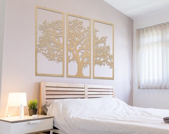 Tree Of Life 3 Panel Tree Wood Wall Art Wall Hanging Etsy Wood Wall Art Hanging Wall Art Wall Art Living Room