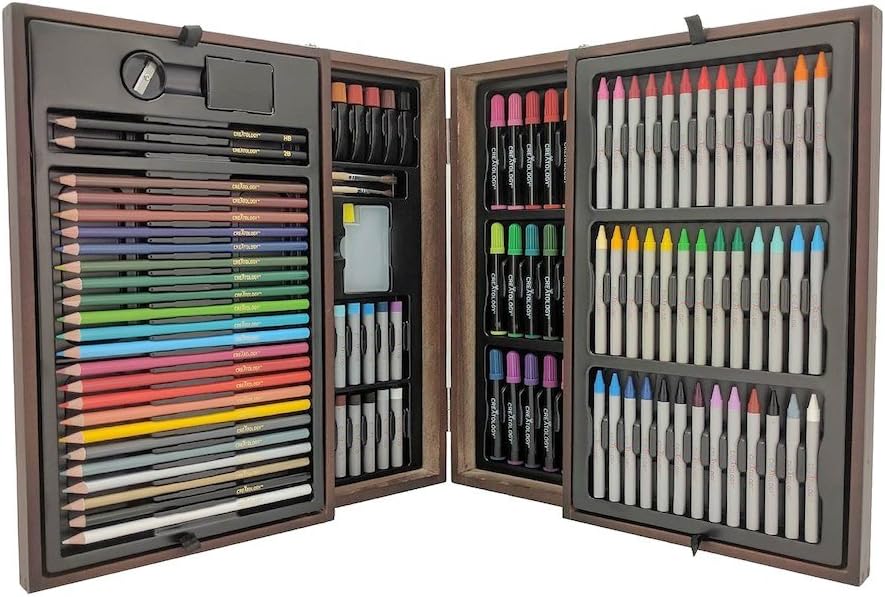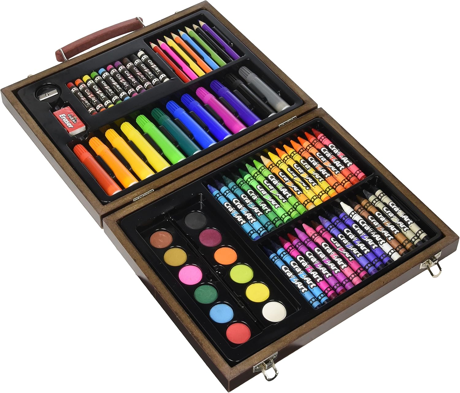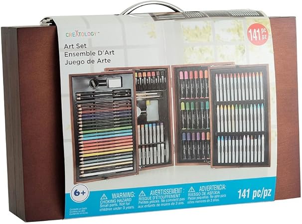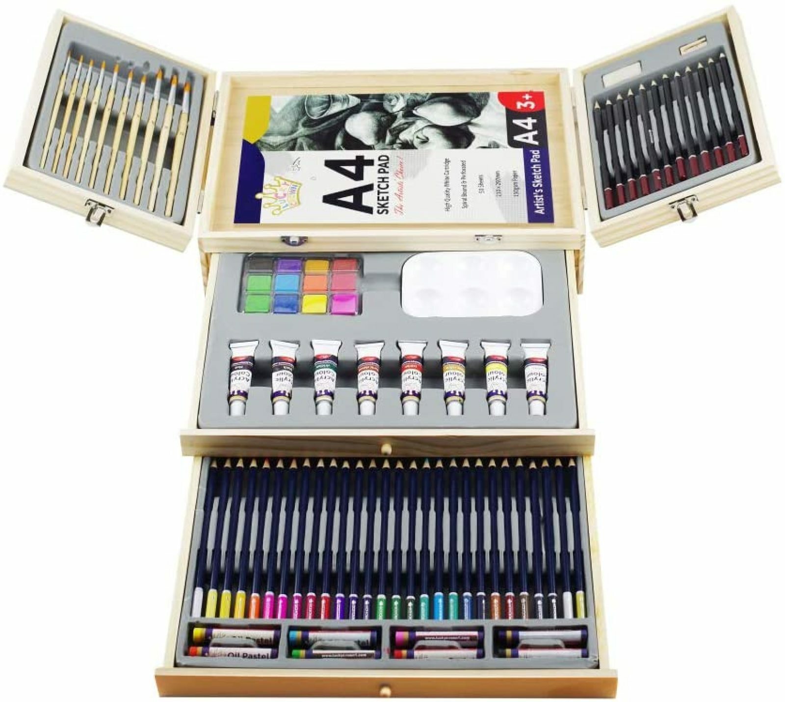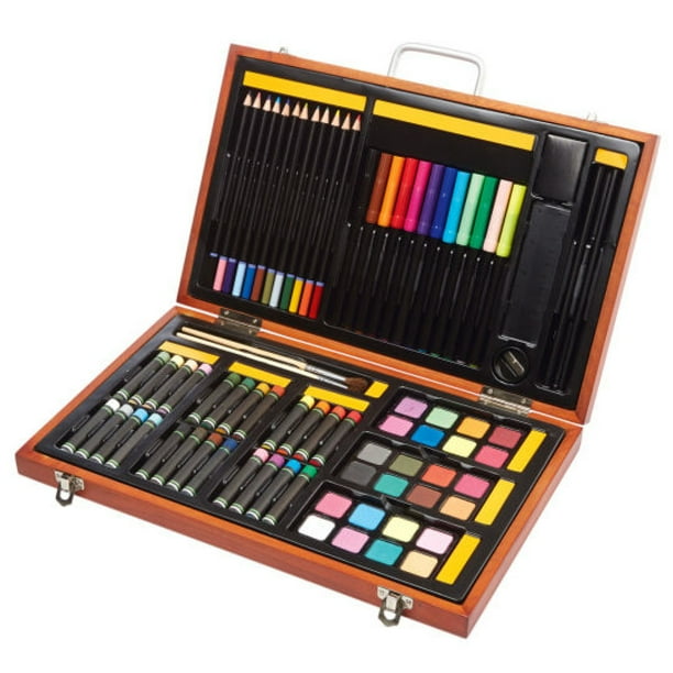 24 watercolor cakes 24 oil pastels 23 a4 papers. This complete art set will inspire creative expression by providing young artists with the necessary tools to bring their artistic vision to life. Packed in a sturdy wooden storage case this set includes pencils markers paints and more.