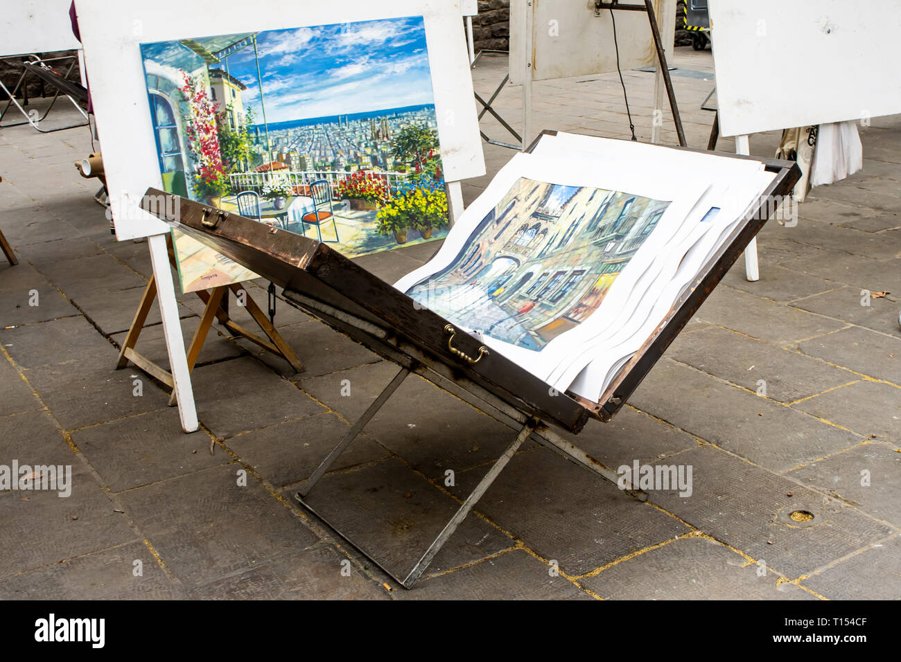A Concept Picture Of A Works By A Street Artist Inside A Wooden Easel Briefcase Gathered And Ready To Leave Stock Photo Alamy