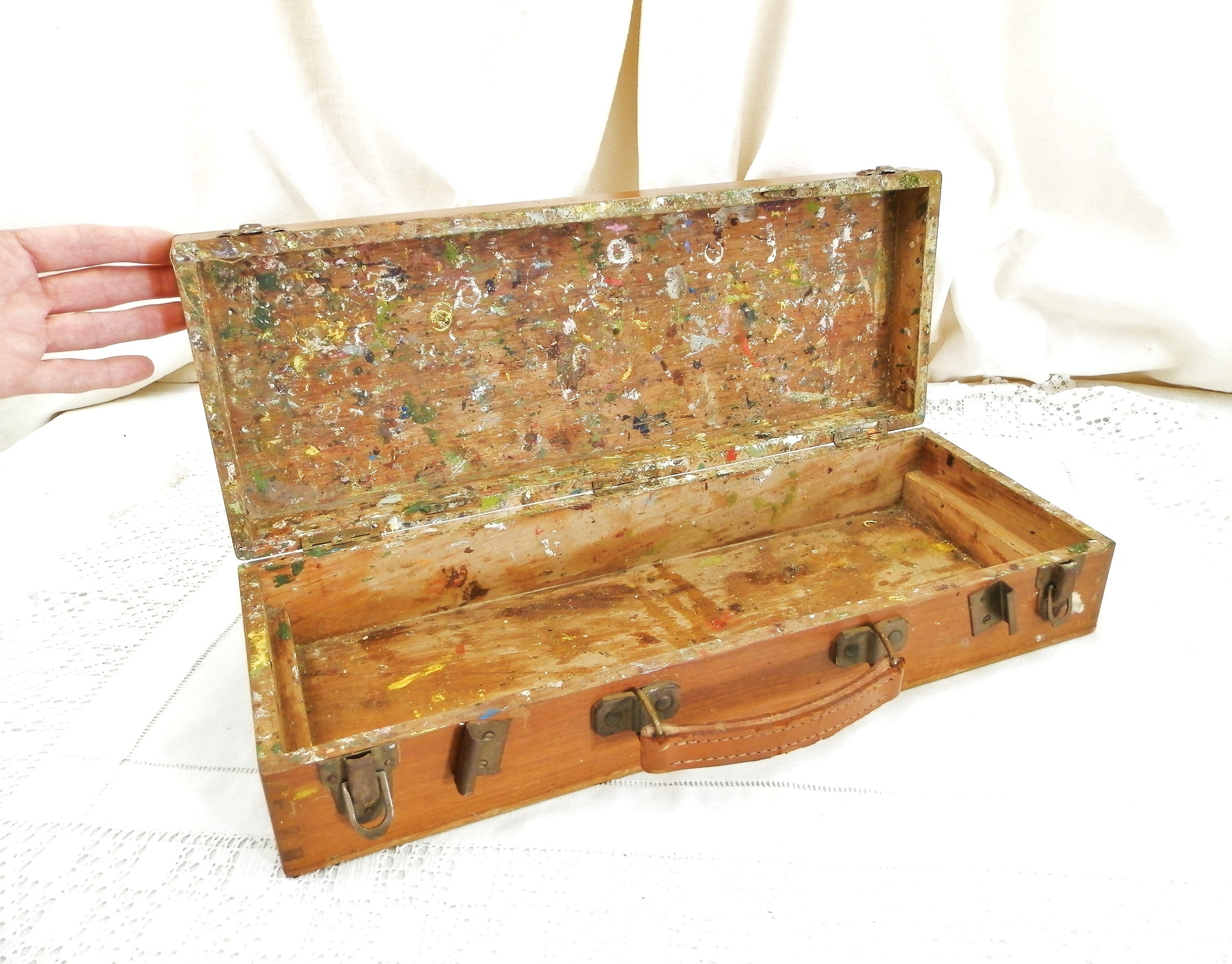 Vintage French Rectangular Wooden Artist Paint Box With Dove Tail Joins Paint Splatters On The Inside Retro Art Equipment Wood From France