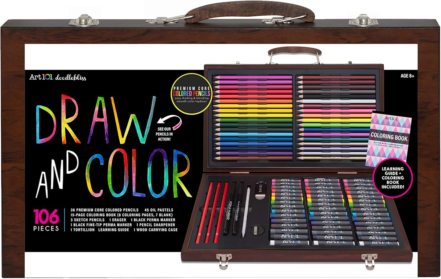 103 piece deluxe art set with 2 x 50 page drawing pad art set in portable wooden case ainting drawing set professional art kit for kids teens and adultsperfect gift. 48 out of 5 stars 106. 10 drawer wood artist supply storage box pastels pencils pens markers brushes.
