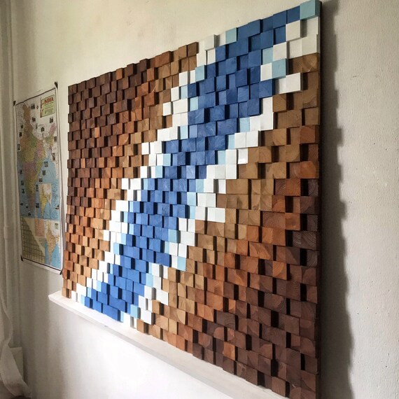 Large Wood Wall Art Raging River Mosaic Wood Art Etsy