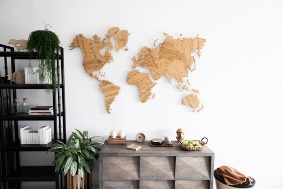 Wood Wall Art Continent Map Large Wooden World Map Map Of Etsy