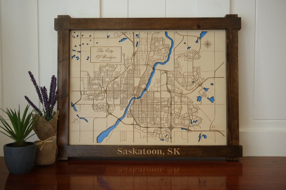 Saskatoon Wooden Map Wall Art Home Decor Rustic Modern Large Etsy