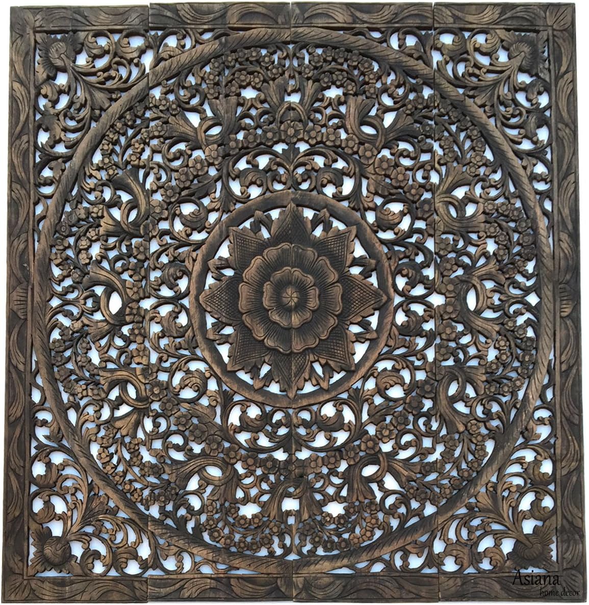 Amazon Com Large Tropical Wood Carved Wall Panels Floral Wood Wall Hanging Decorative Asian Wall Decor 48 Square 48 X48 Black Wash Home Kitchen