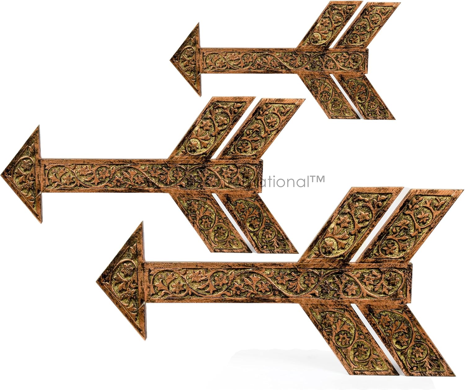 Amazon Com Nagina International Rustic Colorful Handcrafted Wooden Wall Decor Carved Arrows Exclusive Vintage Antique Home Decorative Piece Set Of 3 Metallic Copper Home Kitchen