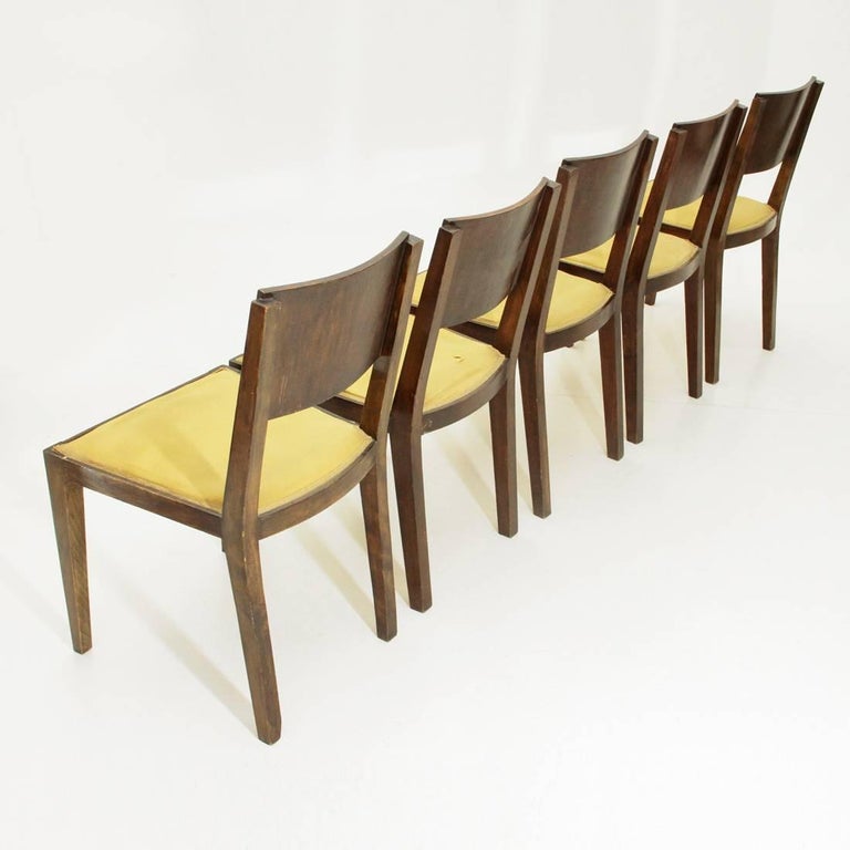Set Of Five Italian Wooden Art Deco Dining Chairs 1940s At 1stdibs