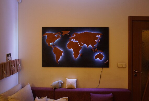 Wood World Map Wall Art Flat Earth Led World Map As Wall Etsy Wall Art Diy Bedroom Led Wall Art Wood World Map