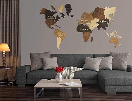 World Map Wall Art Wooden World Map Decor Wall Decoration Wooden Decor For Living Room Or Office For Travellers 3d Decor Murals Wall Art Diy Wall Art Nutwood 7x42 2 Inch 180x108 Cm Amazon Co Uk Kitchen