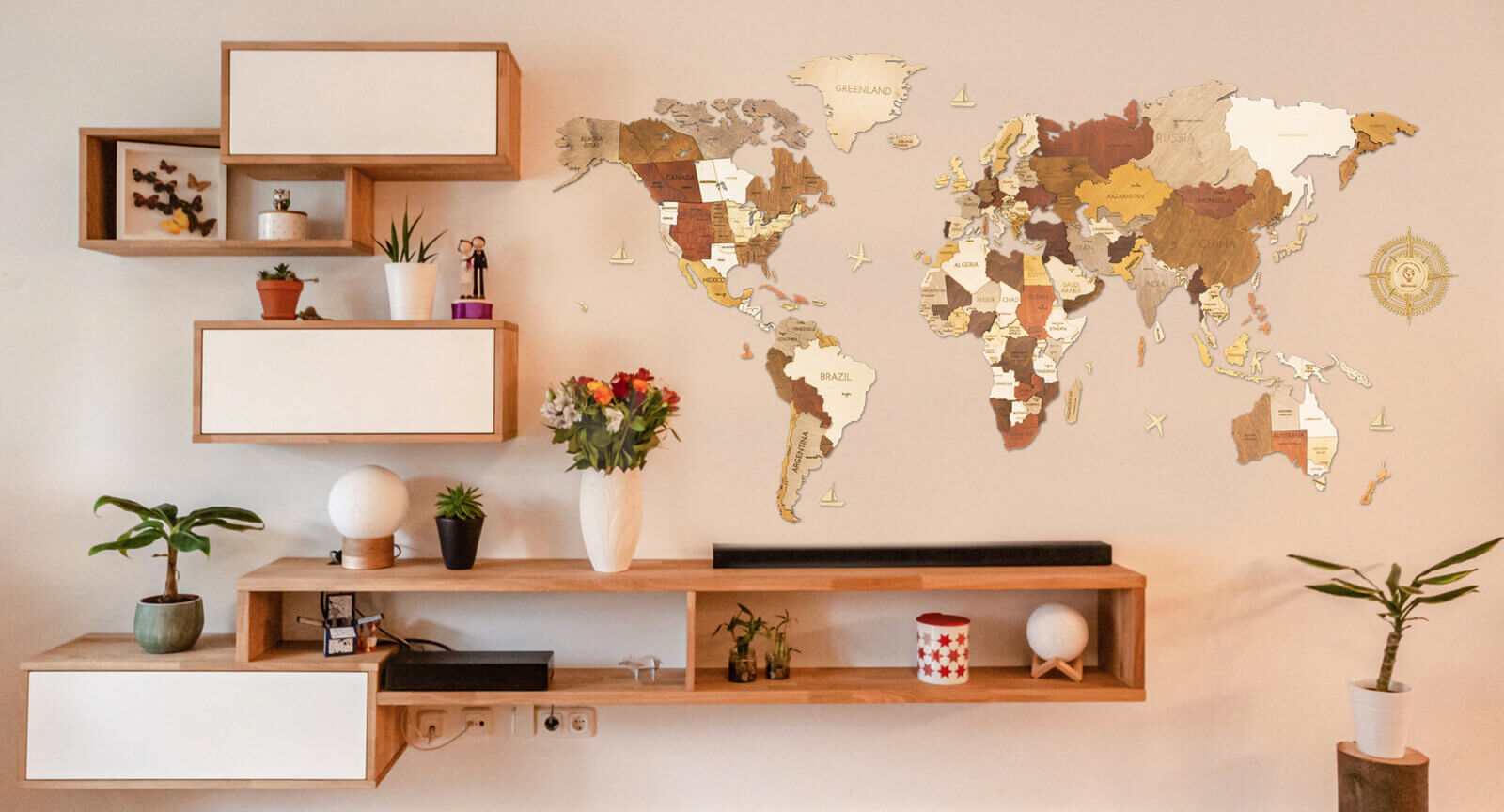 Wooden World Map Wall Decoration 68travel