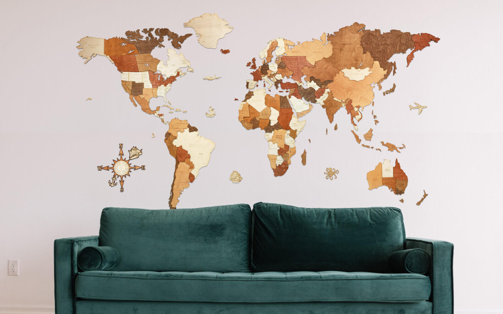 Mapawall world maps are stunning wall decos made with the highest level of wood steel and stone craftsmanship and beautiful design. Most mapawalls allow you to pinpoint specific areas on the map with our special mapawall pin. This large world map uses different shades of wood to highlight the various countries around the world.