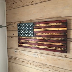 Best Seller This Flag Has Been Built With American Spruce And Stained With Old Glory S Traditiona Rustic American Flag Decor Rustic Flags Wooden American Flag
