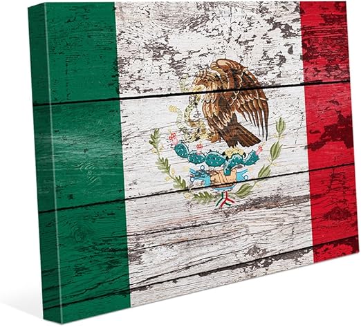 Amazon Com Mexico Flag On Wood Plank Distressed Mexican Flag Wall Art Print On Canvas Posters Prints
