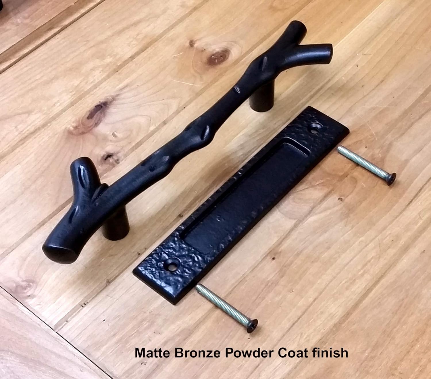 Large Tree Branch Barn Door Handle And Flush Pull Set Matte Bronze