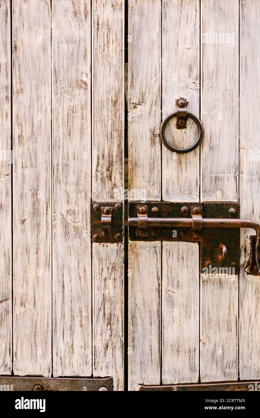 Wooden Door With Metal Bolt And Ring Handle Stock Photo Alamy
