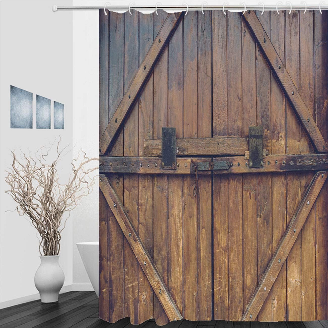 Amazon Com Rustic Shower Curtain Old Wood Door With Metal Handle Bathroom Waterproof Polyester Shower Curtain For Bathtub Showers Home Kitchen