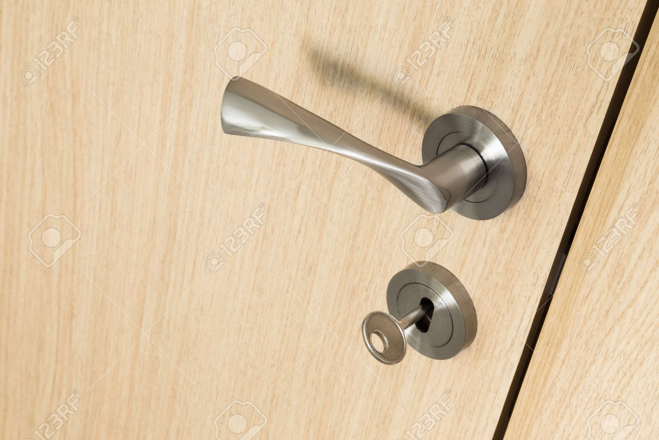 Metal Door Handle And Key In A Lock On A Light Wooden Interior Stock Photo Picture And Royalty Free Image Image 61036950