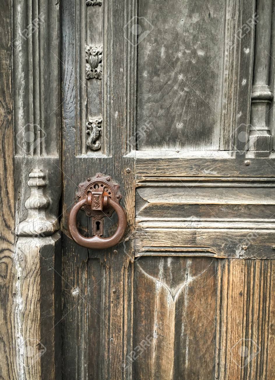 Old Medieval Italian Wooden Door With Metal Handle And A Mail Slot Photo By Sonyakamoz On Envato Elements