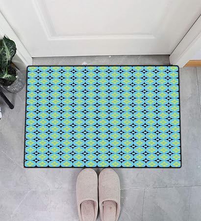 Amazon Com Yahonwa Geometric Easy Clean Entry Way Doormat Star Design Vivid Circles Geometric Shapes Floral Nature Inspired Pattern Entrance Door Rug Floor Mat Cover 31 X 47 Black Blue Green