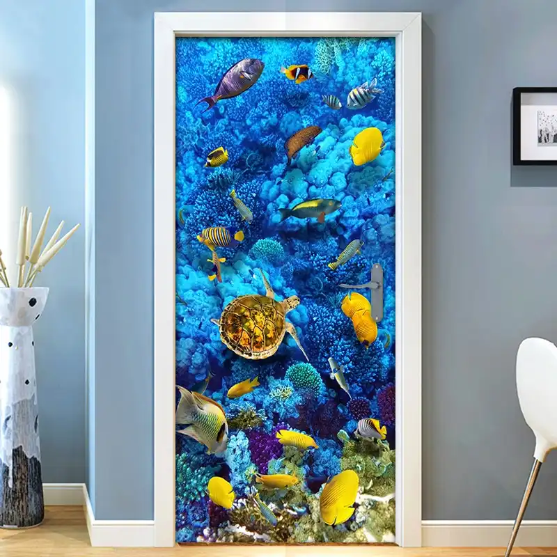 Dunia Bawah Laut Kura Kura Coral 3d Pvc Tahan Air Kamar Mandi Pintu Stiker Anak Anak Kamar Diy Self Adhesive Pintu Dekorasi Stiker Wallpaper Aliexpress