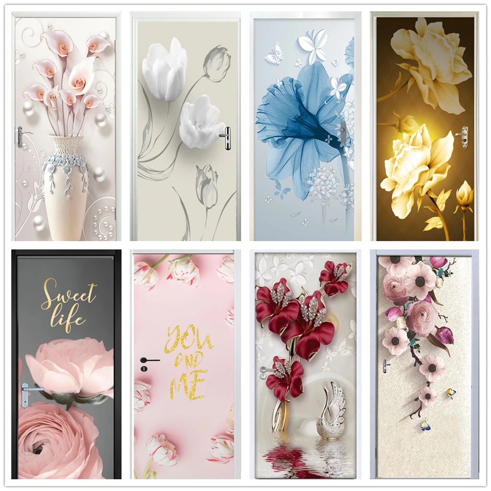 Flower Bedroom Door Sticker For Room Decoration Accessories Teen Girls Waterproof Adhesive Muursticker Papel Mural Painted Paper Door Stickers Aliexpress