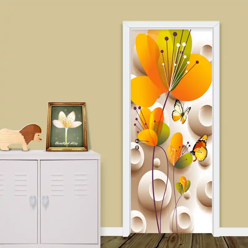 Wholesales Diy Door Sticker Butterfly Around Flowers Door Decal For Bedroom Living Room Wallpapers Decal Home Accessories From Lovercolor 25 12 Dhgate Com