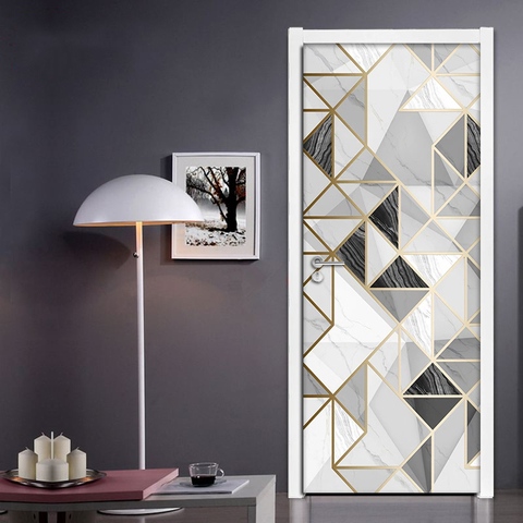 Buy Online Geometric Marble Pattern Waterproof Self Adhesive Door Sticker Wallpaper Living Room Bedroom Door Mural Wall Decals Home Decor Alitools
