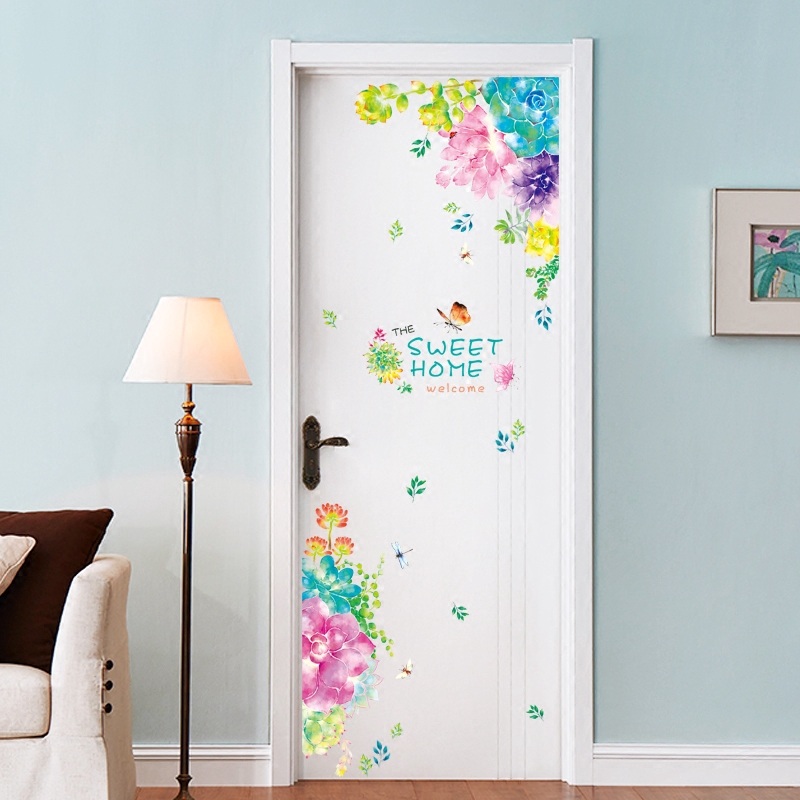 Buy 2pcs Bedroom Door Sticker Set 3d Flowers Pattern Waterproof Self Adhesive Decals Floor Stickers At Jolly Chic