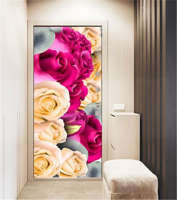 Amazon Com Hwhz Living Room Bedroom Door Sticker Pink Rose Flower Pvc Waterproof Self Adhesive Bathroom Door Mural Poster Wall Papers Home Decor 120x100cm Furniture Decor